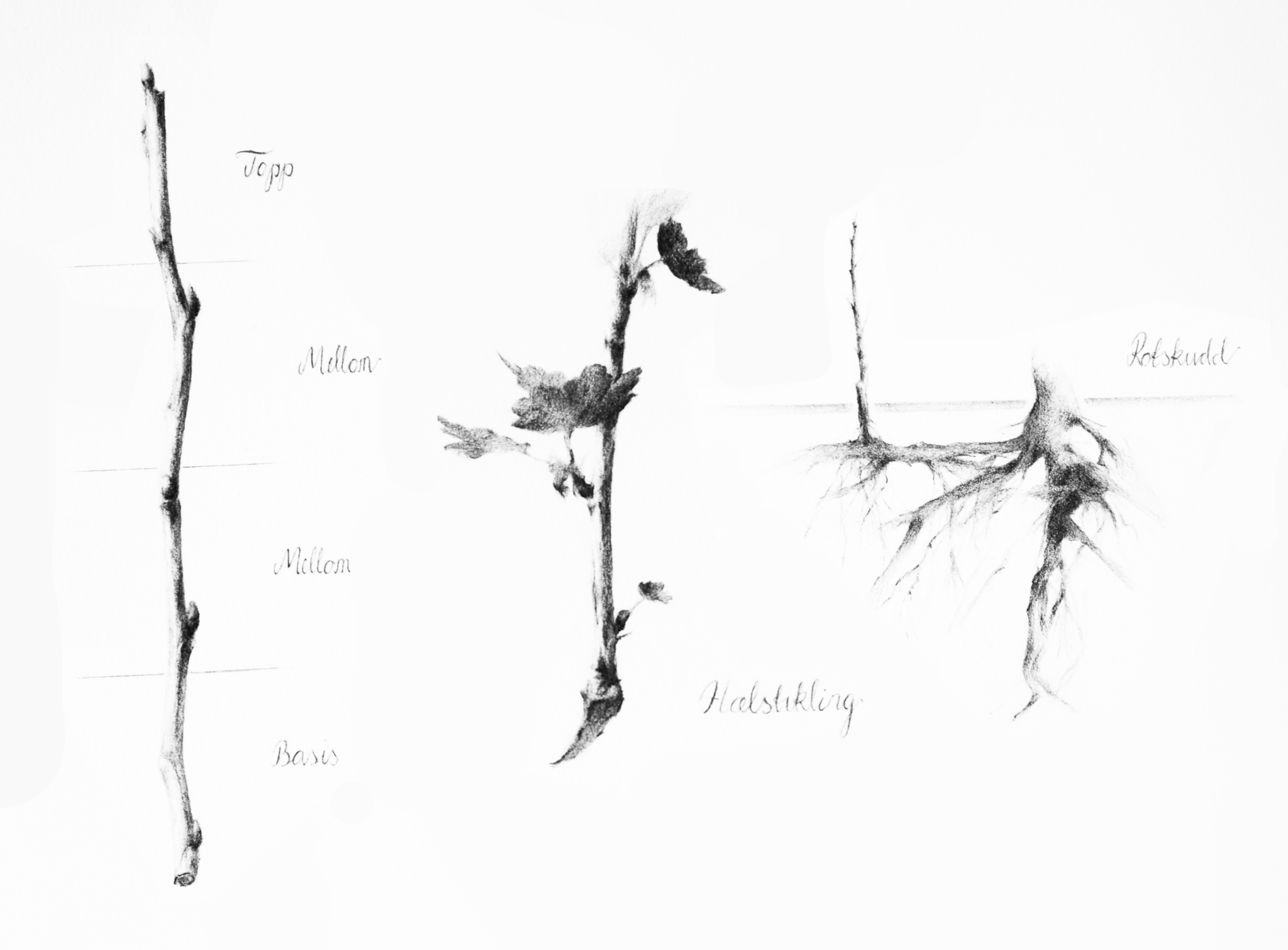 Stiklingen skal plantes to tredjedeler ned i jorda, slik at 2–3 knopper stikker opp.