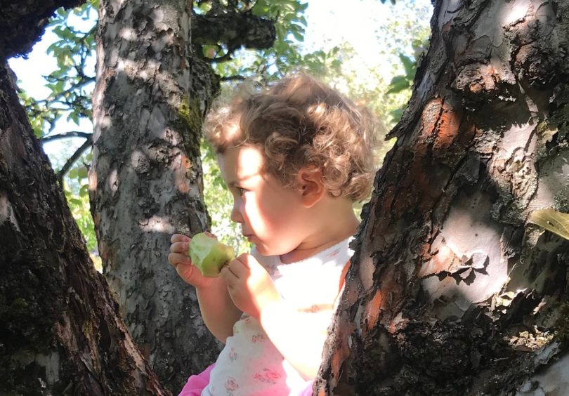 FAMILIEEIENDOMMEN VÅR kalles for Granlund. Høyreiste grantrær utgjorde lenge en liten lund på østsiden av det hvite trehuset hvor fjerde generasjon nå trår sine barnesko. Men årene gikk, og de stolte nåletrærne hvor grandtante Magnhild klatret til topps med et norsk flagg på frigjøringsdagen, ble til slutt offer for naboers frykt for høststormene. Kornkråkekolonien som hadde holdt til i grantoppene i flere titalls år, og som med sin ivrige «skravling» bidro til utfordringer i våre naboforhold, måtte lage nye reir. Ti stusslige stubber var alt som ble igjen av barndommens eventyrskog. Jeg tørket en nostalgisk tåre over at familiens minste ikke skulle få vokse opp med å tygge ferske granskudd, kjenne mestring ved å klatre en grein høyere for hver uke, eller bygge hytte i ly av snøtunge greiner om vinteren. Men da jeg hørte treåringens gledeshyl mens hun løp i sikksakk mellom hagens 18 epletrær, innså jeg at fra hennes ståsted, snaue meteren over bakken, kan de mosegrodde, krokete epletrærne være minstlike spennende å utforske frem til skogen igjen hadde vokst seg majestetisk og sterk.