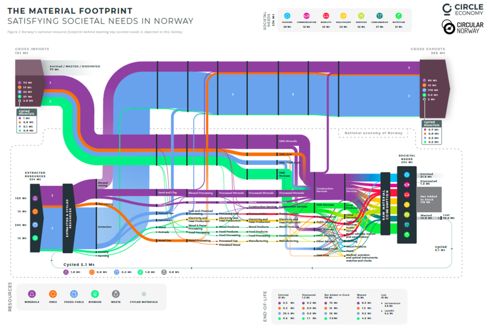 Innen samfunnsbehov er infrastruktur, bolig og mat områdene der omlegging til sirkulærøkonomi kan gi størst effekt på materialfotavtrykket, ifølge rapporten. Den har sett på hvordan seks sektorer kan jobbe strategisk med å forbedre sirkulariteten. Dersom alle seks områdene legger om til sirkulær økonomi kan sirkulariteten komme opp i hele 45,8 prosent og karbonavtrykket reduseres med hele 63 prosent(!).
