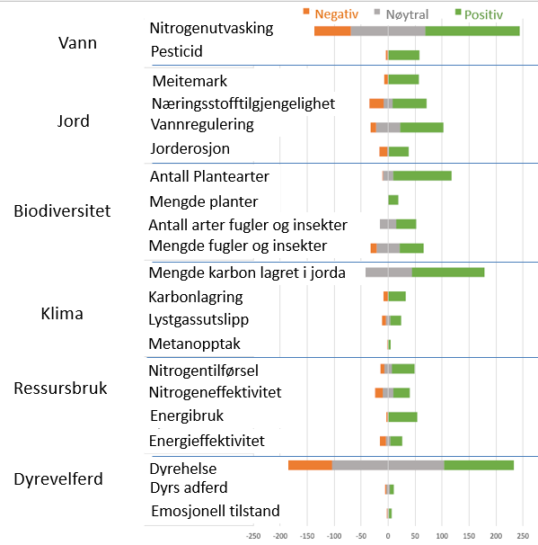 hvetedyrking (Sanders et al, 2025). Det kan konkluderes med at næringsstoffer som nitrogen og fosfor kommer mindre på avveie i økologiske bruk.