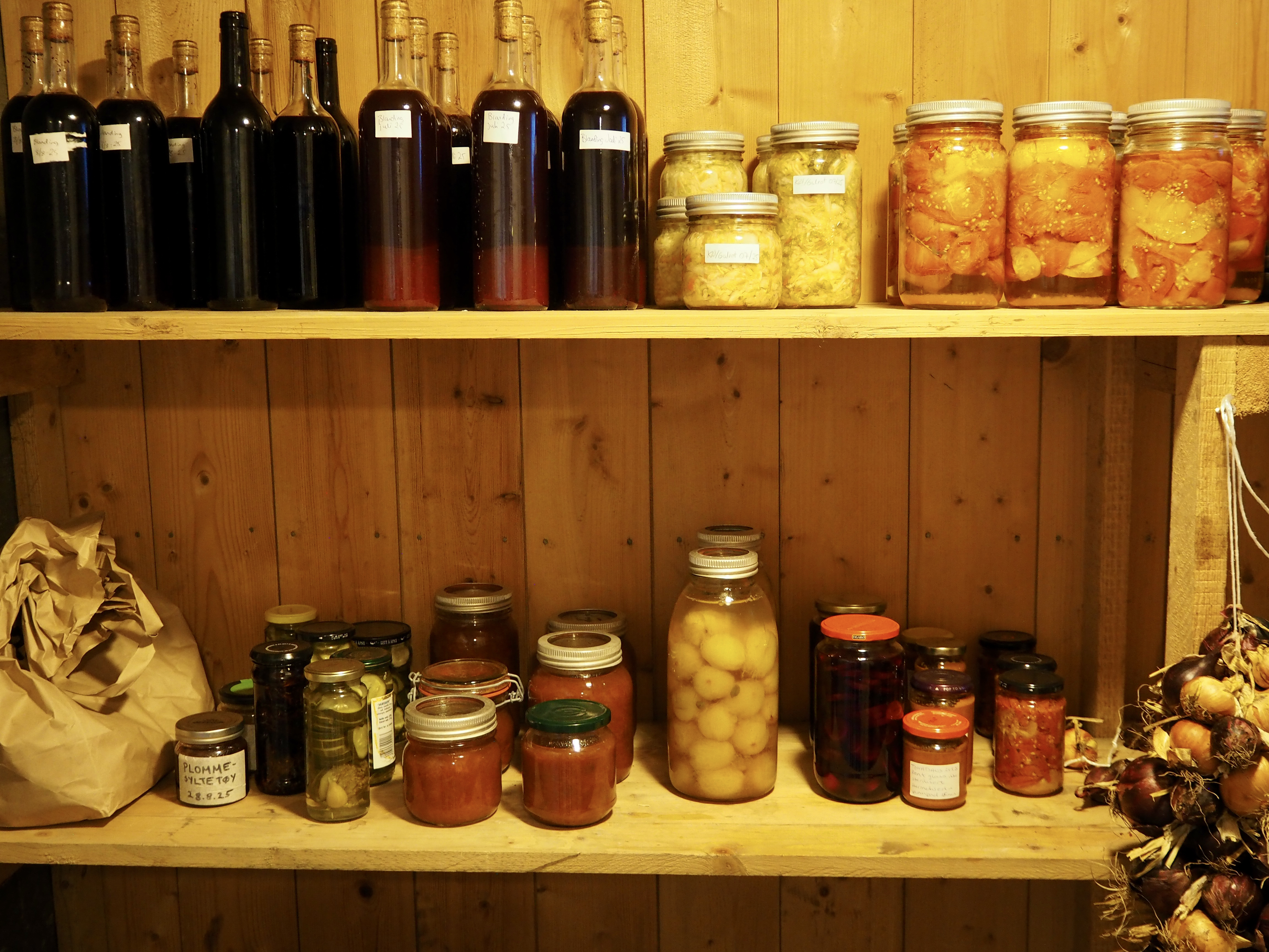 – Hermetisering er en lagringsmetode som ikke krever strøm, opplyser hun og kan nå vise til et eget spiskammers der norgesglassene står på rekke og rad. Det er sure agurker, syltede tomater og rødbeter. Også desserten har hun tenkt på: Plommekompott!